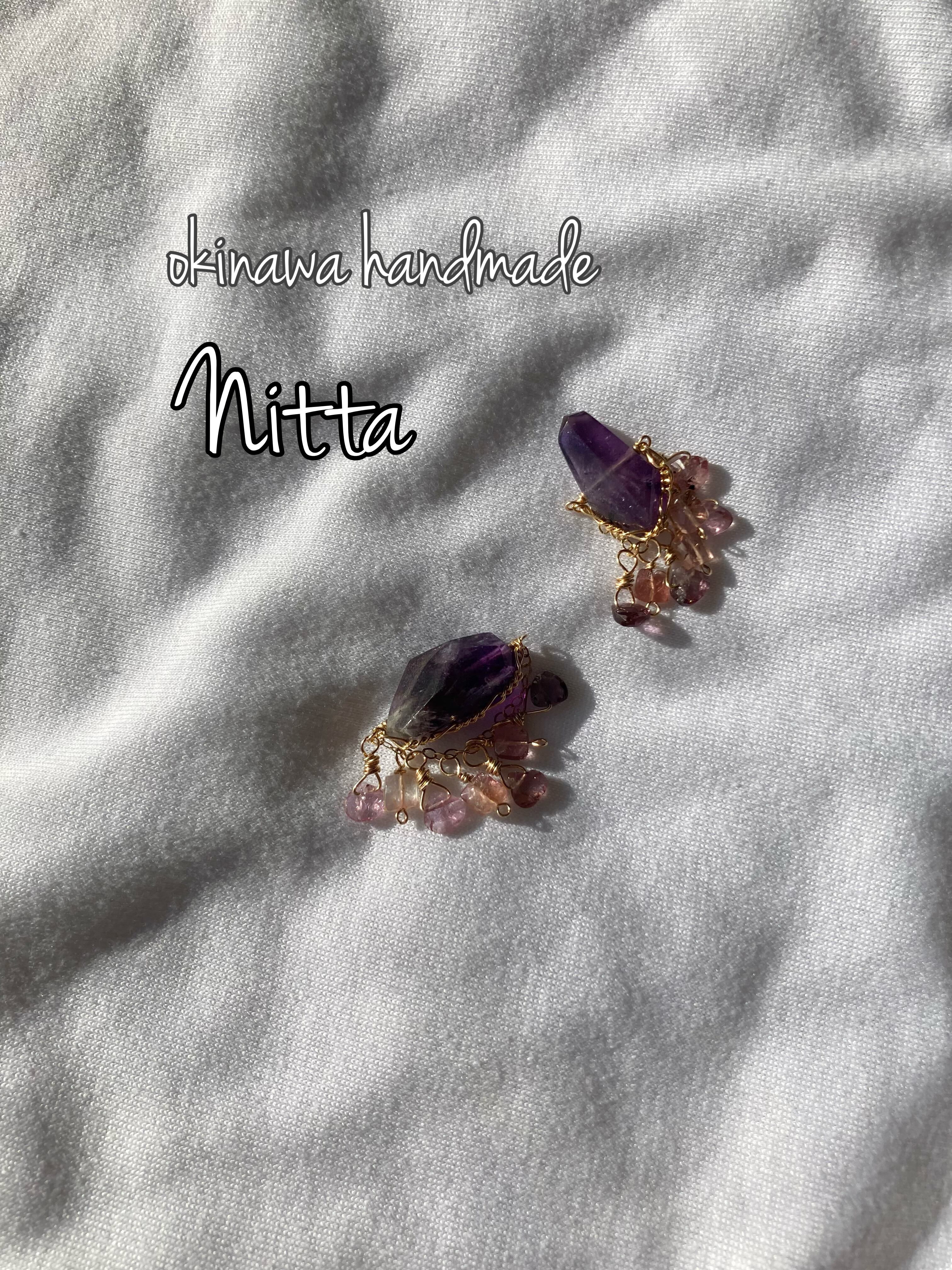 マルチカラーのスピネルがアメジストとグラデーションみたいになってとても綺麗です