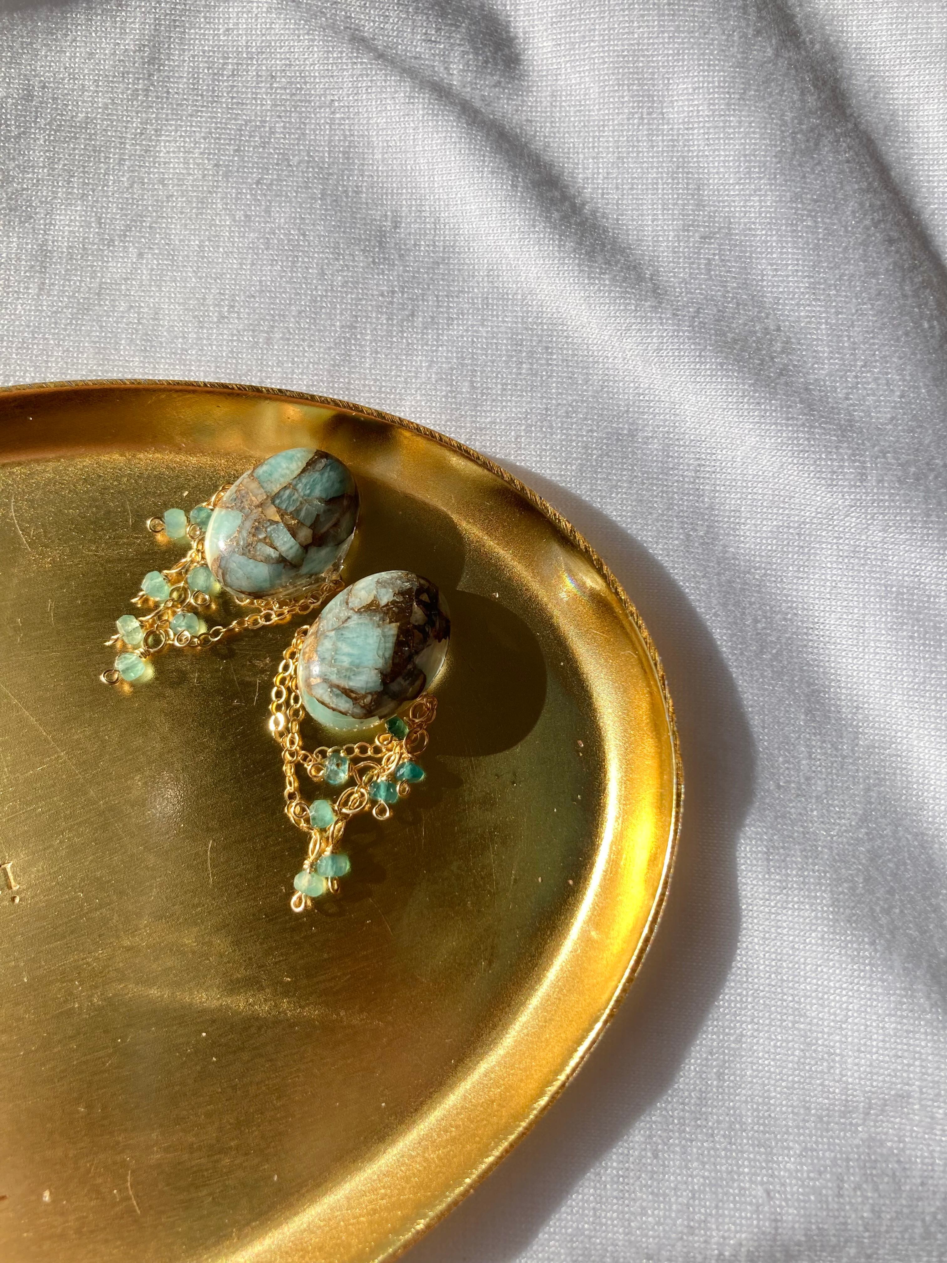 コッパーアマゾナイトと、粒のグランディエライトが繊細で綺麗です